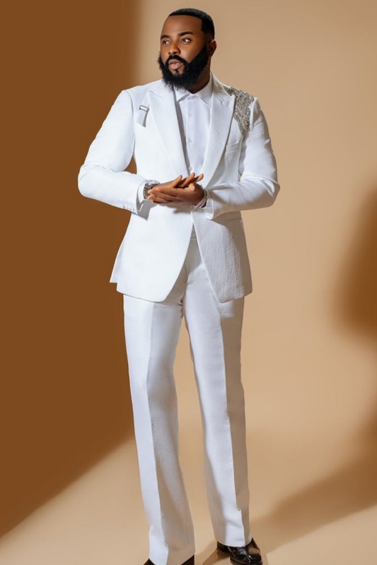 5. White jacquard suits with beadings