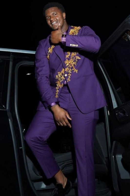 2. Purple suits with gold beadings