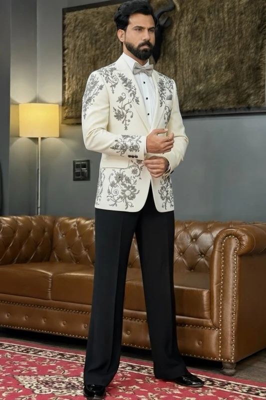 Style Positioning: This style is suitable for occasions such as weddings, garden parties, or fashion events, showcasing a man's elegant taste while highlighting his unique personality with bold colors and details.This is a luxurious formal dress that exudes a "royal" feel, combining traditional formal wear with extravagant decorative elements to create a strong visual impact and a noble aura.