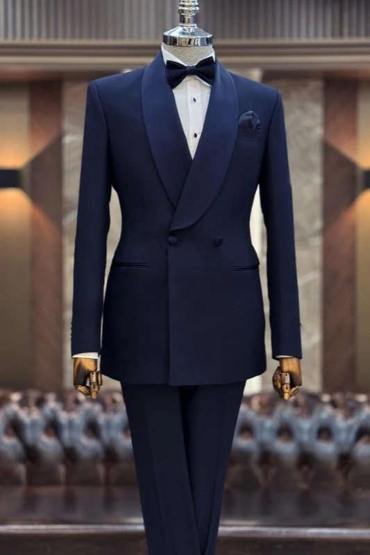 For shorter, slimmer grooms, it is recommended to consider dark-colored velvet series. This type of fabric has a certain support, which can make the suit more three-dimensional and avoid it from being soft and clinging to the body. It can make you look taller and more composed, and can also modify your figure and not expose your thinness.